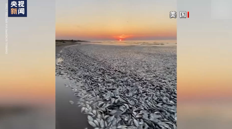 而同样的场景在6月9日也出现在美国得克萨斯州墨西哥湾沿岸的海滩上,大量死鱼密密麻麻连绵数公里。