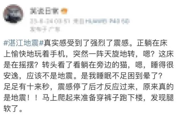 和湛江市区有部分市民来电反映有震感