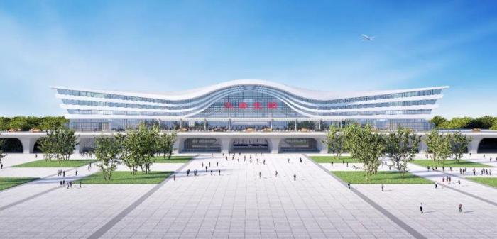 远远望去,造型酷似凤凰展翅的站房轮廓初显,各项建设正如火如荼进行中。